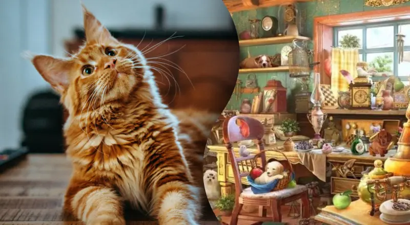 Непросто будет заметить, где именно спрятался кот, ведь комната загромождена большим количеством вещей. Кроме этого, там есть еще и другие животные. Такое количество деталей будет отвлекать на каждом шагу. Поэтому стоит научиться не поддаваться на отвлекающие факторы, а быть сосредоточенным только на главной задаче.