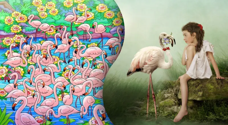Как пишет JagranJosh, на просторах Интернета появилась интересная головоломка, с которой многим людям трудно справиться. Так, на рисунке можно увидеть группу фламинго, которые весело проводят время в пруду. И где-то среди фламинго спрятана непослушная девочка. Задача для читателей – найти спрятанную девочку за 6 секунд.