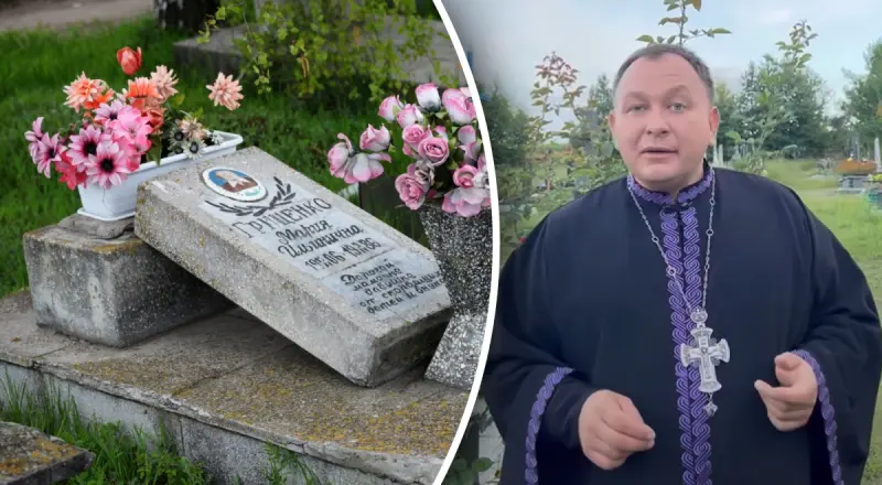 "Если вы на кладбище демонтируете какое-то надгробие, памятник, и выбрасываете его вот там под забор, это грех. Но если вы ставите на своих родителях... Вот стоял памятник старенький на папе, но подселили маму еще сюда, и старый памятник мы в середину бросили. А грех выбрасывать под забор и делать помойку из кладбища", - сказал священник.