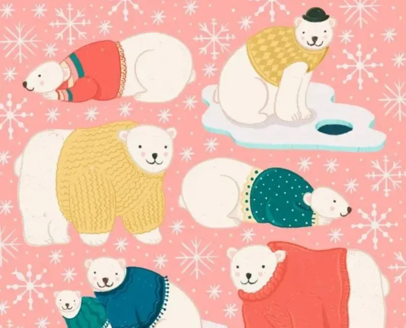На изображении – белые медведи. Все они в разных свитерах на зимней рыбалке ловят рыбу. Вам нужно найти эту рыбу, которая на картинке. Да, рыба там действительно есть, надо лишь внимательно посмотреть.