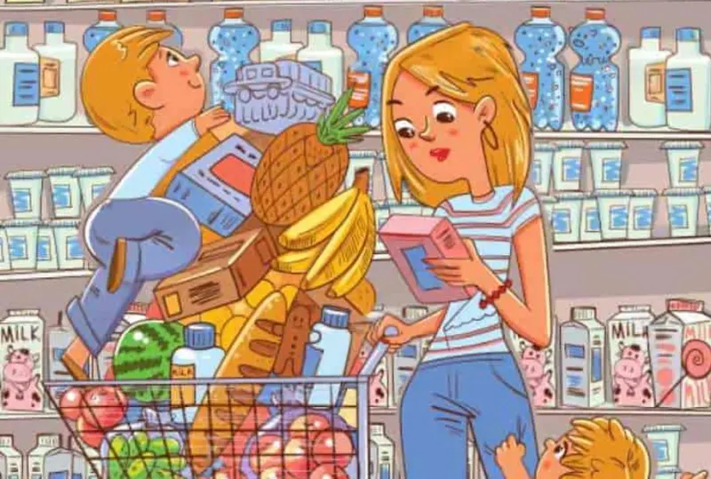 В этой головоломке представлена сцена в супермаркете. Мама с двумя детьми покупает продукты в супермаркете. На виду у всех изображен автомобиль. Сможете ли вы найти его за 5 секунд?