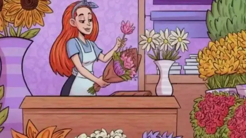 В сегодняшней оптической иллюзии скрыто три лица в цветочном магазине.