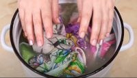 Когда пройдет нужное время, белье следует достать, прополоскать и вывесить на улицу просушить. После того, как белье просохнет, его нужно будет прогладить и можно проверить, что получилось.