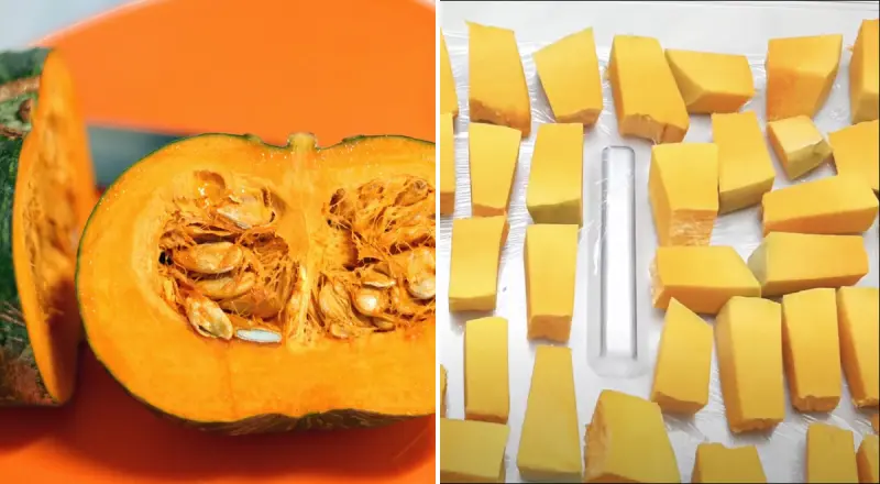 Перед заморозкой кусочки тыквы можно бланшировать.