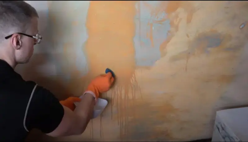 Втираем в то место, где был нанесен первый раствор, смывая ранее нанесенную пасту.