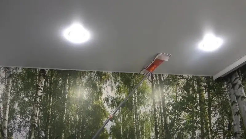 В итоге натяжной потолок на вашей кухне должен стать чистым и блестящим.
