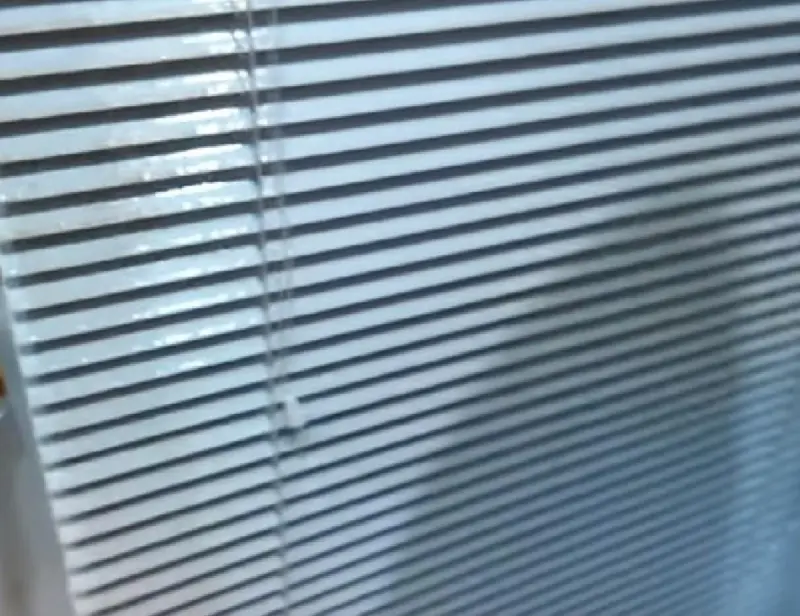 Равномерно наносим средство по жалюзи. Должно быть заметно, как грязь сразу отходит. После этого смываем водой, поливая жалюзи из душевого шланга.