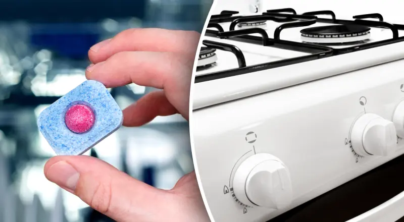 Не секрет, что газовая или электрическая плита, на которой мы готовим каждый день, молниеносно покрывается жиром и нагаром. Если вовремя ее не вымыть, очистка поверхности становится настоящей проблемой. Возникает вопрос, как убрать застывший жир с плиты. Мы расскажем вам, как это сделать при помощи таблетки для посудомоечной машины. Такой лайфхак быстро поможет вам отмыть даже самую грязную плиту.