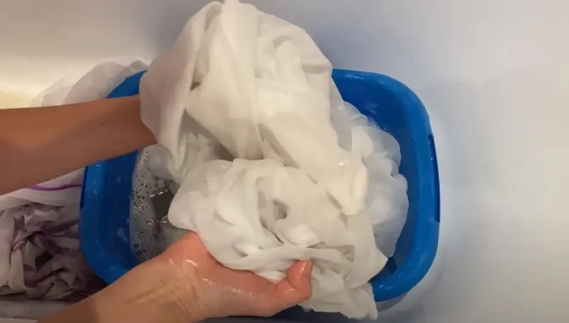 Оставляем тюль в растворе на несколько часов