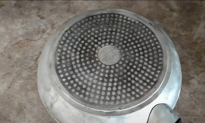 После того как прошло время, нужно достать сковороду и начать чистить ее вручную ножом и металлической губкой.