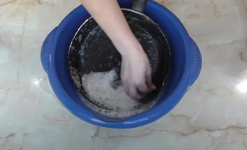 Когда прошло время, возвращаемся и протираем сковороду губкой. Желательно после этого промыть ее несколько раз горячей водой.