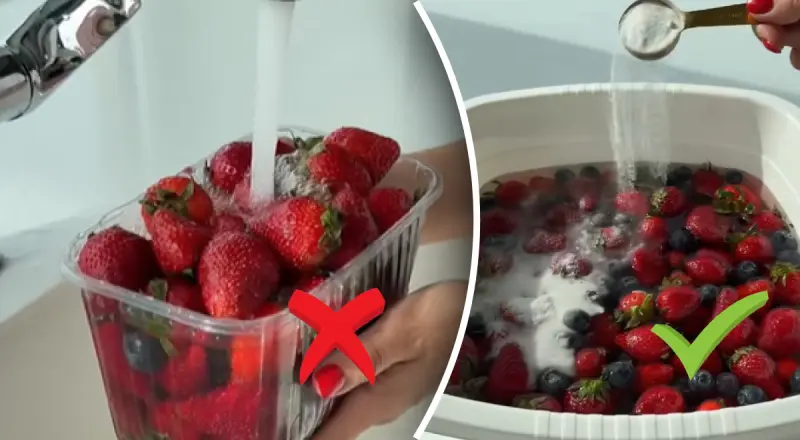 Она поделилась способом, как быстро и качество промыть ягоды, в частности клубнику. Для начала ее действительно нужно помыть под проточной водой, но дальше ягоды необходимо замочить в специальном растворе.