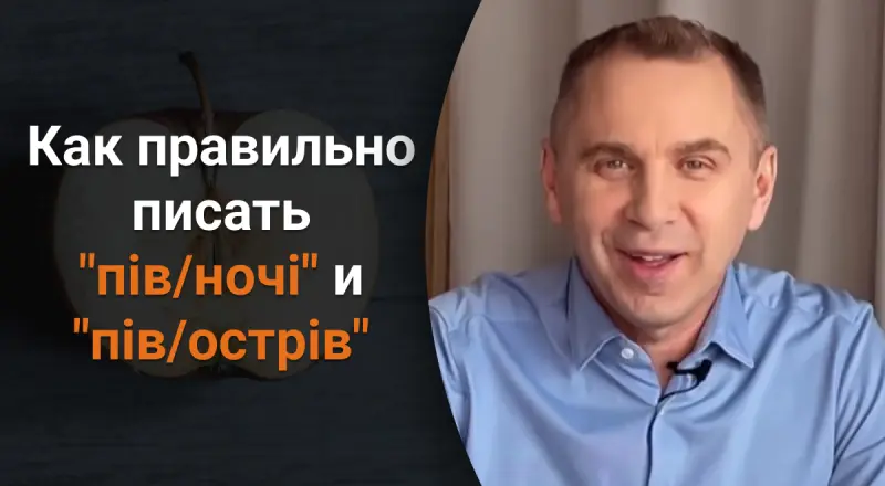 "Друзья, как только не пишут числительное "пів" со следующим словом: и вместе, и отдельно, и с дефисом. Но согласно нормам нового правописания, числительное "пів" (половина чего-то) пишем отдельно с существительными в родительном падеже ("кого? чого?"). Вот например, "пів яблука" – это то же самое, что "половина яблука". Так же "пів Києва", "пів ночі", "пів острова", – объяснил Авраменко.