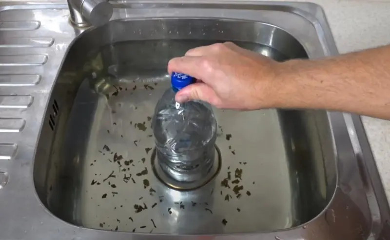 Чистим засор в раковине при помощи бутылки