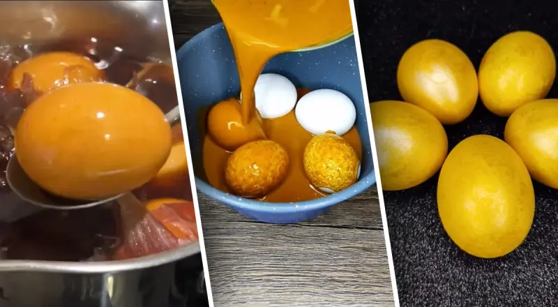 Автор YouTube-канала "Всякая всячина" рассказала о том, как покрасить яйца в золотой цвет с помощью куркумы и желтого красителя.
