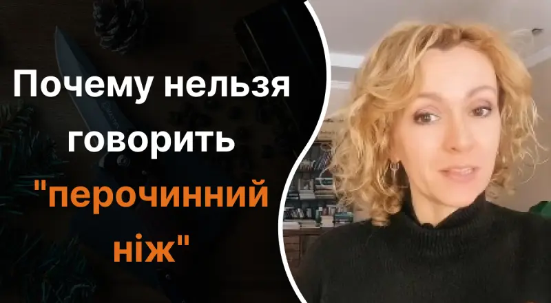 "В украинском языке мы такие ножи называем просто "складАними". Обратите внимание на ударение - не "склАданий ніж", а "складАний ніж". Итак, напомню, не "перочинний ніж", а "складАний ніж". Вот так правильно", - подчеркнула Багний.