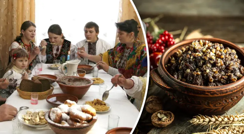 Одной из главных традиций является праздничный обед, который состоит из двенадцати блюд - символа двенадцати апостолов и двенадцати мест в году. Главным блюдом является кутья - это блюдо, состоящие из пшеницы, меда, мака и орехов, которые олицетворяют благословение и счастье.