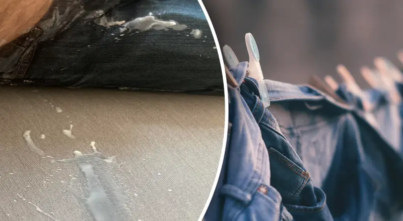 Обработайте след от жира или красителя: Нанесите пятновыводитель, разотрите щеткой, оставьте на 15-30 минут.