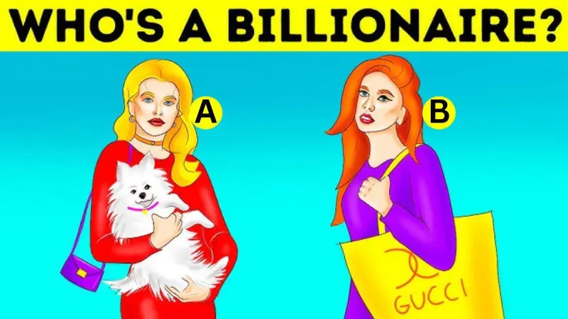 Ответ: на картинке женщина А - миллиардер. Дело в том, что женщина B несет поддельную роскошную сумку.