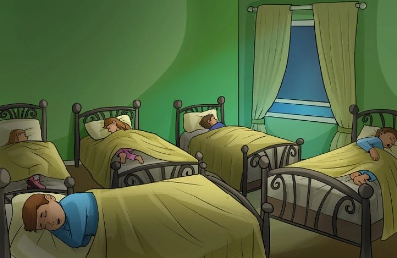 На картинке, которую опубликовал сайт Brightside мы видим пятерых детей, которые спят в своих кроватях.