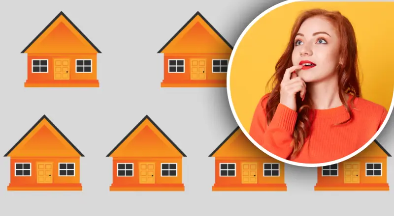 На первый взгляд все дома на рисунке выглядят одинаковыми. Но первое впечатление может быть ошибочным. Если внимательно присмотреться, то становится понятно, что один дом всё-таки отличается от всех остальных.
