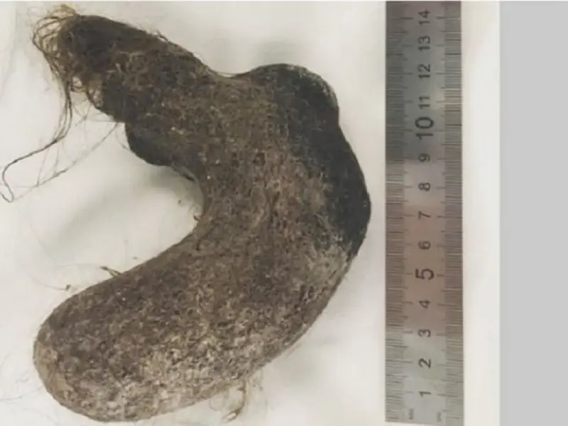У Росії група хірургів провела складну операцію і витягли зі шлунка 12-річної дівчинки величезний жмут волосся і вовни, який за формою вкрай нагадує валянок.