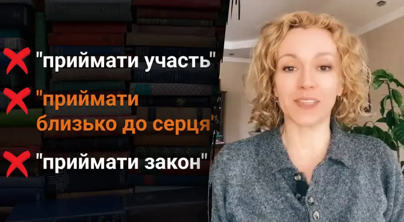 "Приймати участь".. Наверное все уже знают, что так говорить неправильно. На всякий случай напомню, что надо "брати участь". Но со словом "приймати" есть и другие выражения, и на них тоже стоит обратить внимание", - отметила она.