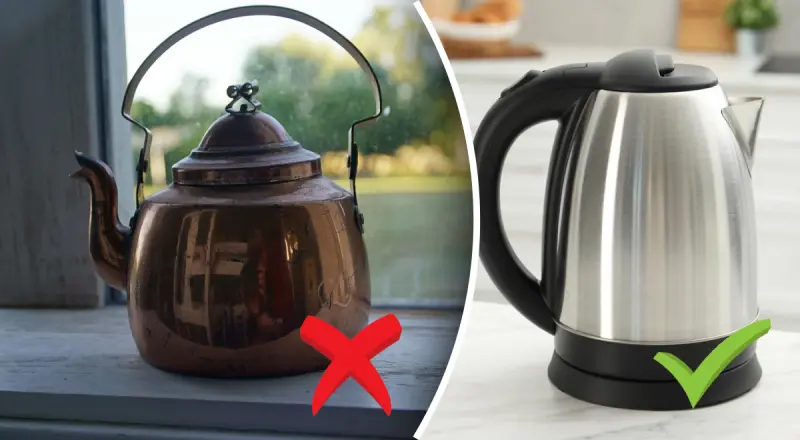 В Сети также предупреждают, что электрочайник нельзя ставить на плиту, поскольку его пластиковые или металлические детали могут расплавиться или повредиться. Обычные металлические чайники, предназначенные для нагрева на газовой или электрической плите, следует ставить только на конфорку соответствующего размера, чтобы избежать перегрева ручки или корпуса.