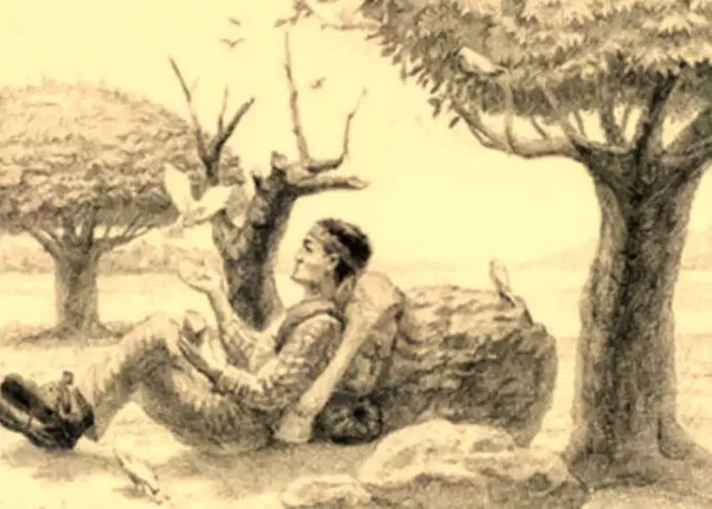 Посмотрите внимательно на картинку. Вы увидете человека, отдыхающего под деревом. Также можно легко заметить птицу, летающую около рук человека, еще одна сидит на камне, а третья - на большой ветке дерева. Но кроме того на картинке спрятана лошадь.