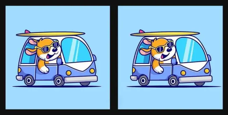 В сегодняшней задаче представлены две похожие картинки щенка за рулем фургона. Хотя на первый взгляд эти две картинки кажутся идентичными, но это не так. Между двумя картинками есть три отличия.