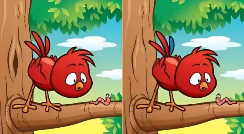 В сегодняшней задаче представлены две одинаковые фотографии птицы, сидящей на ветке дерева. Хотя на первый взгляд эти два изображения кажутся идентичными, но это не так. Между двумя картинками есть пять отличий.