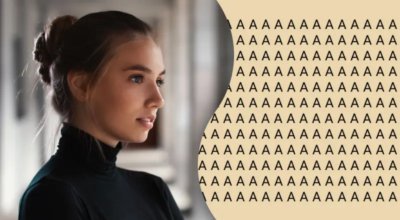 Следующая загадка не так проста, как может показаться на первый взгляд. На картинке изображено большое количество букв А, и где-то среди них спрятаны две буквы, которые отличаются – В и Р. Их нужно отыскать максимально быстро.