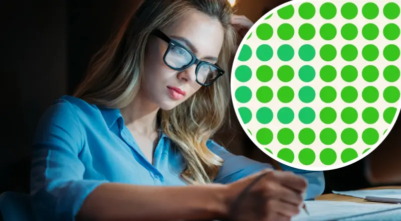 В этой оптической иллюзии вам нужно найти фигуру, спрятанную среди зеленых точек на изображении. Сначала вы можете увидеть на изображении только зеленые круги. Однако, если присмотреться повнимательнее, то светло-зеленые цвета образуют на рисунке квадратную фигуру.