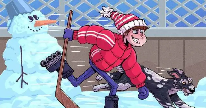 На картинке мы видим мальчика, который катается по льду, и собаку, которая бежит рядом с мальчиком. На первый взгляд может казаться, будто бы никакой ошибки на рисунке нет, но на самом деле это не так. Если внимательно присмотреться, то станет понятно, что кое-что было изображено неправильно.