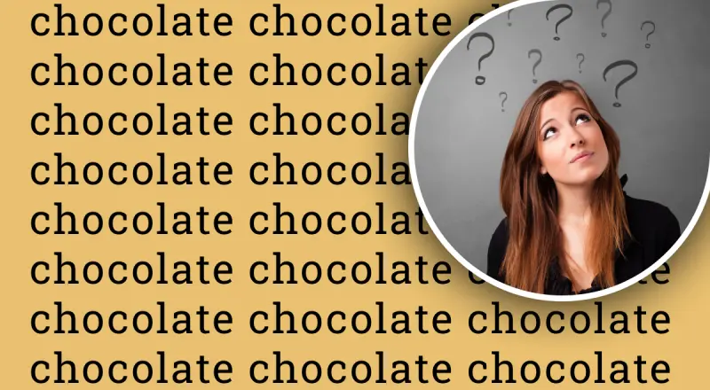 На картинке мы видим много слов chocolate (с англ. шоколад). На первый взгляд может казаться, будто бы все слова написаны правильно, но на самом деле это не так. Среди них где-то спряталось неправильное слово.