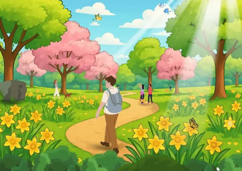 На сегодняшней картинке с визуальной иллюзией читателям представлена сцена в парке. Люди в парке выгуливают своих питомцев. Парень идет с сумкой на спине.