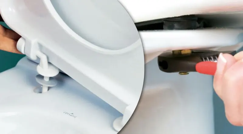 Если крепеж выполнен из полимерных болтов, их можно открутить вручную. Если это не удаётся, нужно зажать детали сверху и снизу и попробовать снова. При этом важно быть аккуратным, чтобы не повредить или не поцарапать чашу унитаза. Не следует прилагать чрезмерное усилие или наносить удары, так как всё должно легко откручиваться.