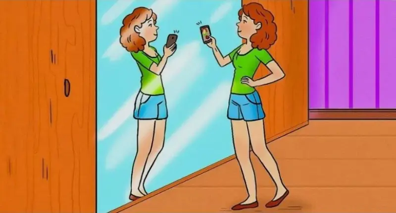 Внимательно посмотрите на изображение. На первый взгляд все кажется обычным: женщина стоит перед зеркалом, как будто глядя на свое отражение. Однако в этой сцене есть одна серьезная ошибка. Сможете ли вы обнаружить ошибку за 5 секунд?