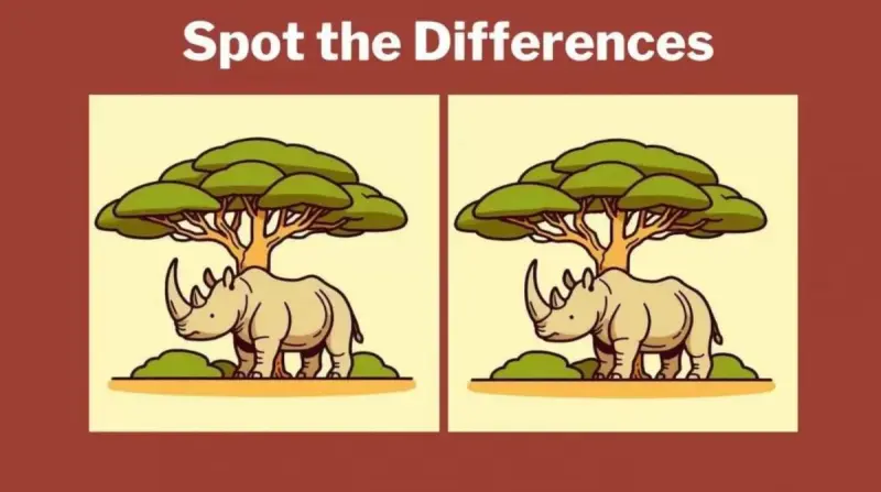 Давайте начнем! На картинке выше изображен носорог. Хотя на первый взгляд эти два изображения выглядят одинаковыми, но это не так. Между двумя картинками есть три различия.