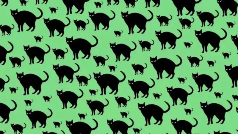 На первый взгляд, все, что вы видите, - это большое количество черных кошек, каждая из которых похожа по форме и размеру. Но присмотритесь: где-то на этом изображении прячется хитрая крыса. Черные силуэты кошек сливаются воедино, и крыса ловко маскируется в узоре.