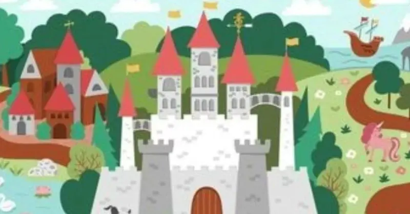 На картинке – королевство. Изображены замок и другие персонажи. Наша задача – найти здесь рыцаря.