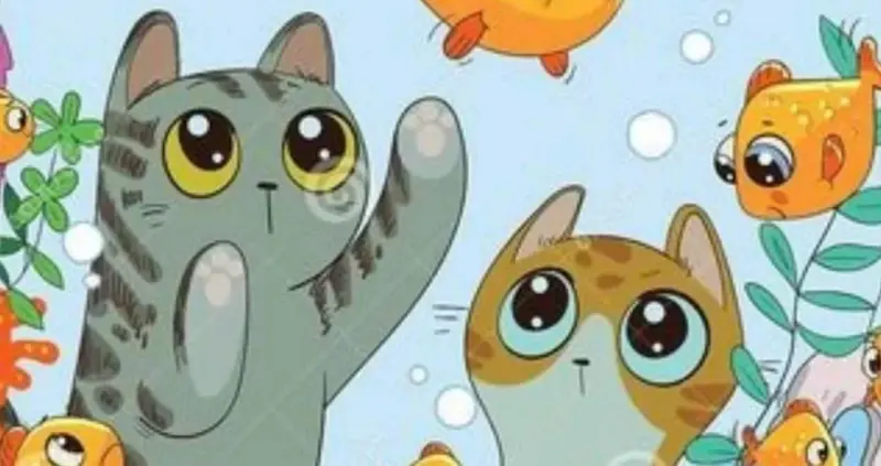 На картинке – два кота наблюдают за рыбками. Показан даже краб и сундук с золотыми монетами. Задача – найти, где здесь может прятаться крыса.