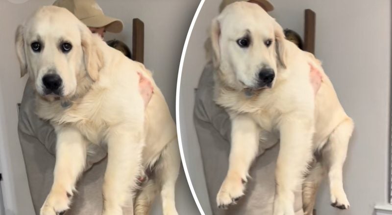 Когда владельцы ретривера это увидели, были шокированы. А сам пес забавно отвернул мордочку, как будто недовольный происходящим.