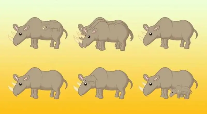 Нужно очень внимательно изучить взглядом рисунок и попытаться определить, какое точное количество носорогов там находится.