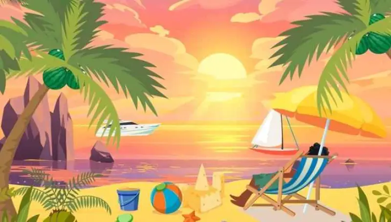 На картинке мы видим пляж, женщину, которая любуется закатом, и катер в море. На первый взгляд может казаться, будто бы всё на картинке правильно, но это не так - где-то там всё-таки спряталась ошибка, и отыскать ее нужно максимально быстро.