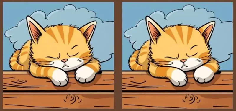 Вы видите два одинаковых изображения кота, спящего на бревне. На первый взгляд, эти два изображения кажутся похожими. Но это не так. Между двумя картинками есть три отличия, и только самые внимательные глаза смогут найти их за 23 секунды.