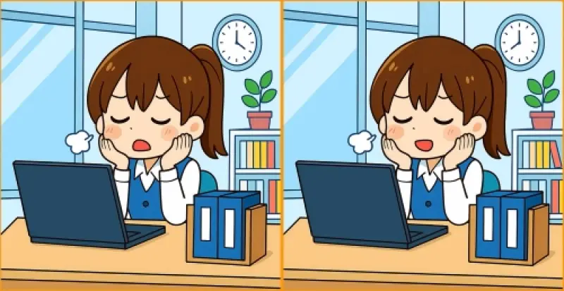 Итак, вы готовы к следующему испытанию? Взгляните на две картинки уставшей женщины, работающей в офисе. На первый взгляд картинки могут показаться одинаковыми, но на изображении спрятаны 3 отличия, и ваша задача - найти их как можно скорее. Сможете ли вы найти их все всего за 45 секунд?