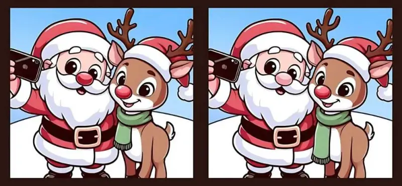 В сегодняшнем задании представлены две одинаковые фотографии Санта Клауса и оленя. Хотя на первый взгляд эти две фотографии кажутся идентичными, но это не так. Между двумя картинками есть три отличия.