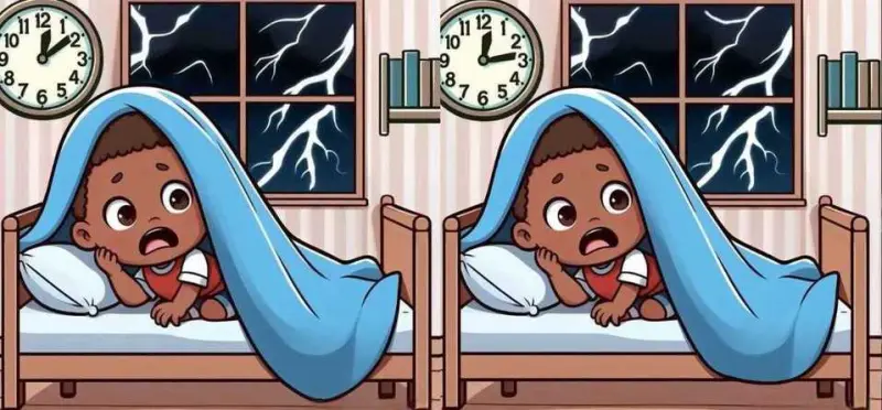 В сегодняшней головоломке изображены две похожие на вид картинки испуганного ребенка в комнате. Хотя на первый взгляд эти две картинки выглядят идентичными, но это не так. Между двумя картинками есть три отличия. Сможете ли вы найти эти три отличия за 27 секунд?