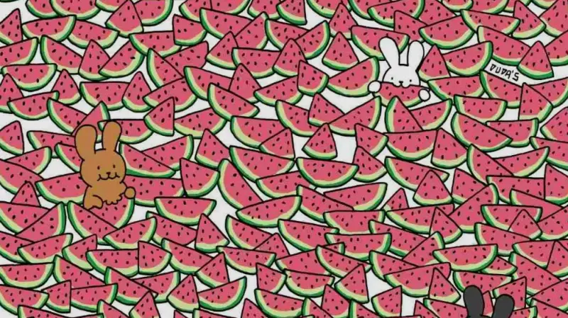 Посмотрите на эти восхитительные дольки арбуза! Пять долек арбуза без семян прячутся на виду. Ваша задача: найти их за пять секунд.